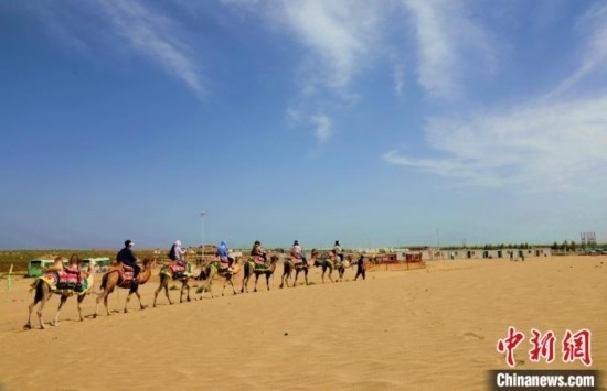 沙漠騎駱駝是沙漠之門景區(qū)眾多游玩項(xiàng)目中最受歡迎的項(xiàng)目之一。 翟麗瑩 攝