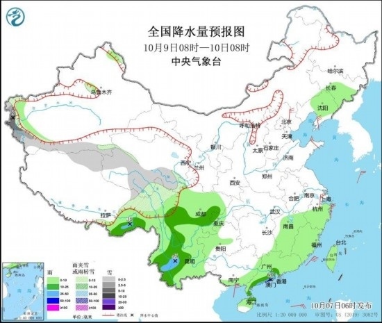 圖3 全國降水量預報圖(10月9日08時-10日08時)