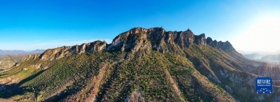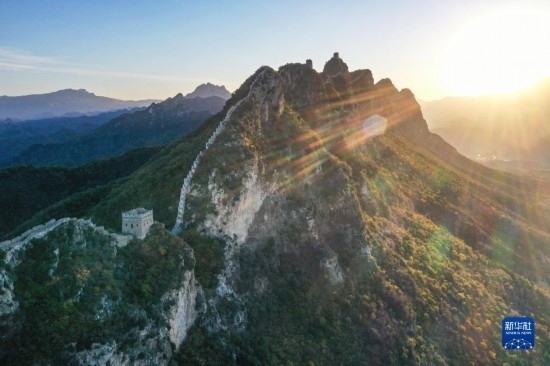 朝陽下的司馬臺長城(無人機全景照片,10月15日攝)。