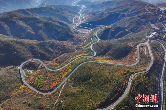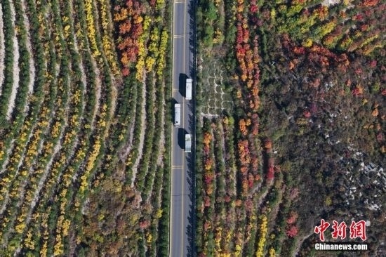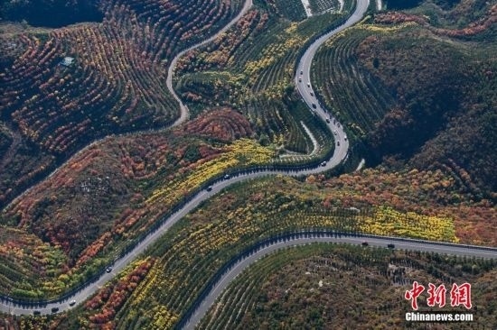 10月15日,航拍山西省太原市天龍山秋景絢麗。近日,天龍山迎來(lái)秋景最佳觀賞期。中新社記者 武俊杰 攝
