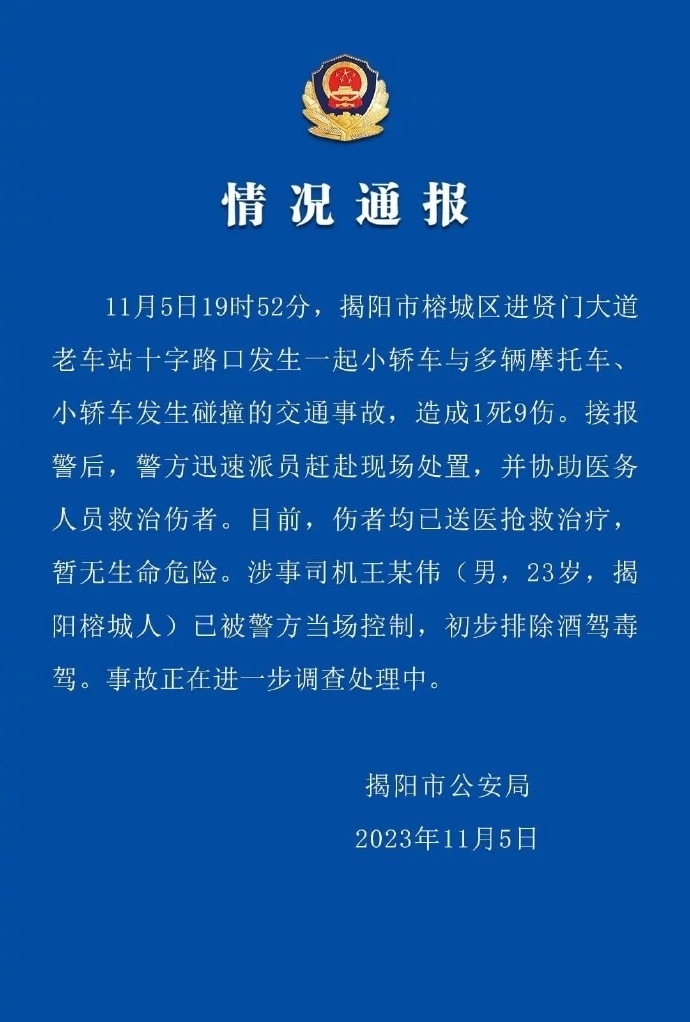 ·廣東揭陽發(fā)生多車碰撞事故,致1死9傷,涉事司機(jī)被當(dāng)場控制。