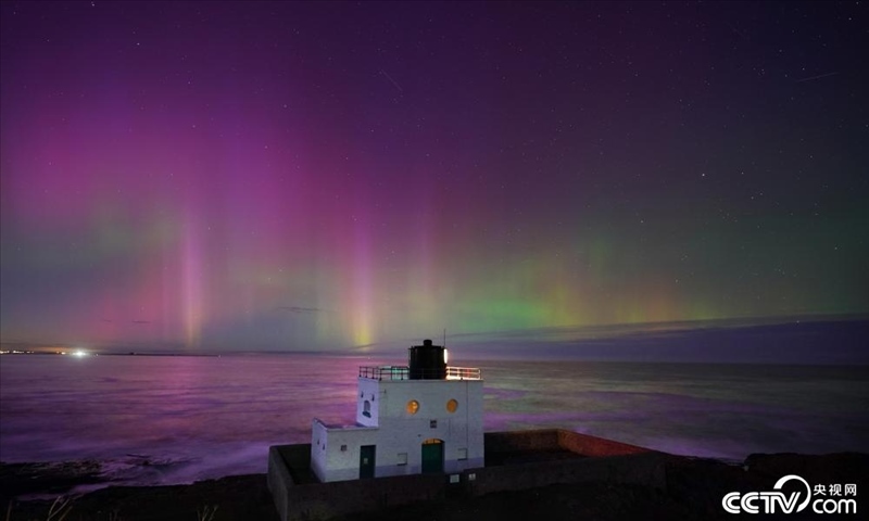 英國諾森伯蘭郡,天空中出現(xiàn)唯美北極光。