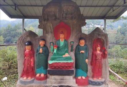 此外在四川廣安、資陽、內(nèi)江等地也存在類似情況。位于廣安市經(jīng)開區(qū)的金鳳山摩崖造像,開鑿于宋代,1994年當(dāng)?shù)厝罕娮阅假Y金對造像的殘缺部位進(jìn)行了修補(bǔ),并涂上紅、藍(lán)、青三色油漆。位于內(nèi)江市資中縣的羅漢洞,建于宋代,1998年,當(dāng)?shù)厝罕娮曰I資金對羅漢洞內(nèi)“拈花微笑佛”進(jìn)行裝彩重繪,目前,其余造像無妝彩重塑現(xiàn)象。此外,核查中還發(fā)現(xiàn)四川資陽市雁江區(qū)的半月山摩崖造像,佛足部分有人為刻畫痕跡。