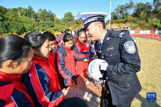 當(dāng)日,長(zhǎng)沙市公安局望城分局交警大隊(duì)的民警走進(jìn)農(nóng)村地區(qū)學(xué)校,通過(guò)交警手勢(shì)演示、鐵騎技能展示、交通標(biāo)識(shí)競(jìng)答、頭盔碰撞模擬體驗(yàn)、汽車盲區(qū)體驗(yàn)等多種形式,開展道路交通安全宣傳活動(dòng),幫助學(xué)生們提高交通安全意識(shí)。