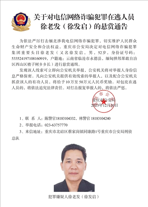 據(jù)了解,今年11月,我公安機(jī)關(guān)對(duì)以明學(xué)昌為首的家族犯罪集團(tuán)重要頭目進(jìn)行公開懸賞通緝。在緬甸各方的大力配合下,首犯明學(xué)昌畏罪自殺,明國(guó)平、明菊蘭、明珍珍3人被緝拿歸案,公安機(jī)關(guān)正徹查其犯罪事實(shí),將依法予以嚴(yán)懲。與此同時(shí),遼寧、福建、重慶等地公安機(jī)關(guān)在偵查中發(fā)現(xiàn),以白所成、魏懷仁、劉正祥為首的3個(gè)家族犯罪集團(tuán)和以徐老發(fā)為首的犯罪集團(tuán),長(zhǎng)期實(shí)施針對(duì)中國(guó)公民的電信網(wǎng)絡(luò)詐騙犯罪活動(dòng),詐騙數(shù)額巨大。在公安機(jī)關(guān)嚴(yán)打高壓態(tài)勢(shì)下,仍不收斂、不收手,同時(shí)涉嫌故意殺人、故意傷害、非法拘禁等多種嚴(yán)重暴力犯罪,犯罪事實(shí)清楚,證據(jù)確鑿充分。