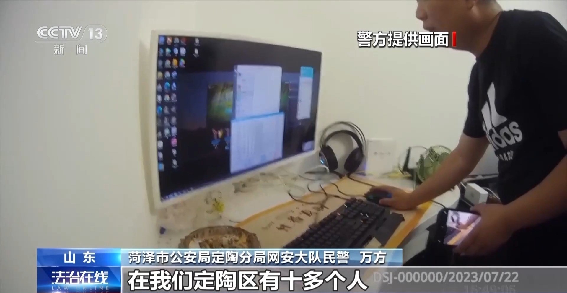 菏澤市公安局定陶分局網(wǎng)安大隊(duì)民警 萬方:微信名叫“瘋子”的注冊量非常大,販賣量比較大,現(xiàn)在我們查獲“瘋子”的京東賬號14萬條。