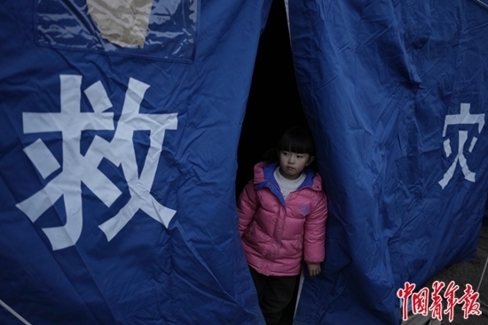 韓福成的兩個(gè)小女兒年紀(jì)小,對(duì)地震沒什么感覺,“還想著睡覺”;獨(dú)自在縣中寄宿的大女兒和老師在一起,“不冷,也不會(huì)很害怕”。