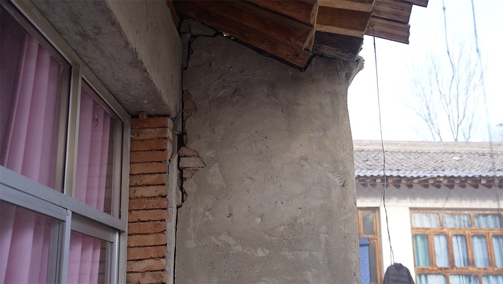山莊村村民在墻體開(kāi)裂的家中。