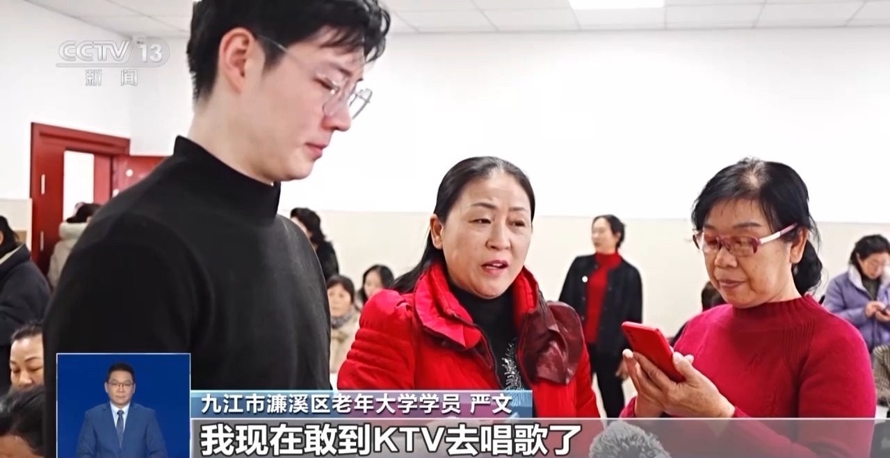 老年大學學員常春的女兒 王常琳:大家像關心孩子一樣,去關注我的媽媽站在哪里,我的媽媽今天上課狀態(tài)怎么樣。因為工作忙,也沒有關注過媽媽的業(yè)余生活??吹揭曨l以后,我感覺媽媽完成了她兒時未完成的夢想,因為她特別喜歡聲樂,年輕的時候,因為照顧我,也沒有時間去學習聲樂。沒想到我的媽媽在這里找到了又年輕一把的感覺。