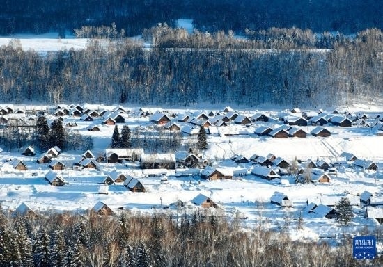 1月17日拍攝的新疆阿勒泰地區(qū)布爾津縣禾木村(無人機(jī)照片)。