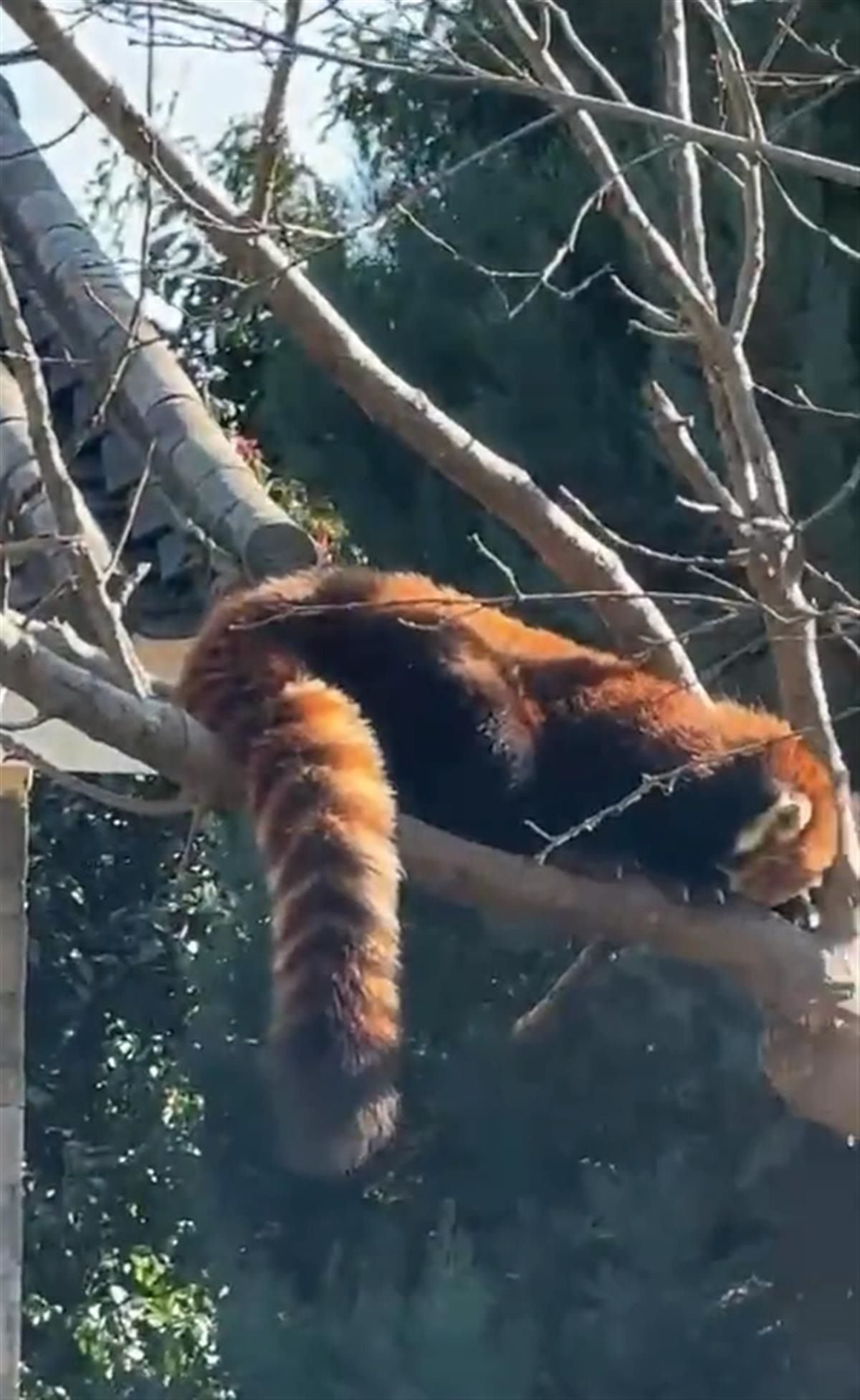 小熊貓躲在樹上(視頻截圖)
