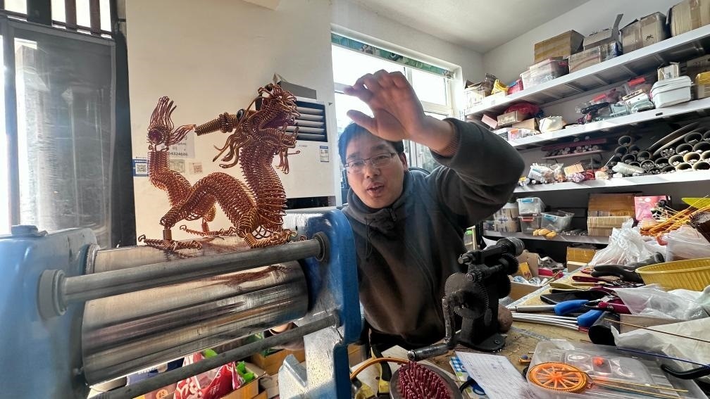 在村民楊訓(xùn)政不大的鋁編工作室內(nèi),簡(jiǎn)易貨架上一排排銅色鋁線編制成的藝術(shù)品讓人目不暇接。一條條鋁制彈簧經(jīng)過(guò)村民巧妙處理后,成了工藝品市場(chǎng)的搶手貨:發(fā)財(cái)樹(shù)、恐龍、摩托車、機(jī)器人……“我這鋁編雖然產(chǎn)量低、規(guī)模小,訂單可已經(jīng)排到了今年10月底。龍年將至,來(lái)自海內(nèi)外的訂單讓大家年前忙得不亦樂(lè)乎?!睏钣?xùn)政一邊用鉗子擺弄著鋁編小龍,一邊告訴記者。