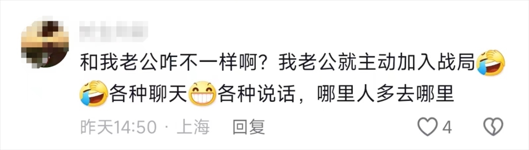 有的“社牛”女婿選擇主動(dòng)加入戰(zhàn)局,哪里人多去哪里,各種聊天,積極融入。