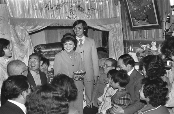 1980年春節(jié)時(shí),有不少港澳同胞回到家鄉(xiāng)結(jié)婚。這是福建晉江縣石獅鎮(zhèn)一戶人家在鬧新房。