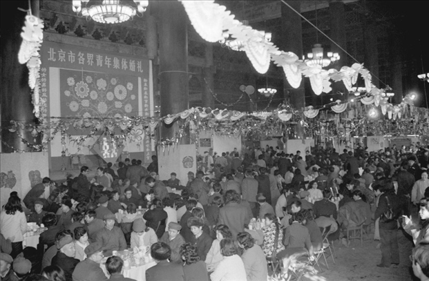 1983年春節(jié)前夕,首都150對(duì)青年破舊俗、立新風(fēng)、文明節(jié)儉辦婚事,參加了由北京市工、青、婦等九單位舉辦的集體婚禮。