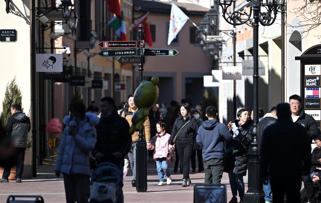 游客在天津佛羅倫薩小鎮(zhèn)內(nèi)逛街。新華社記者李然 攝