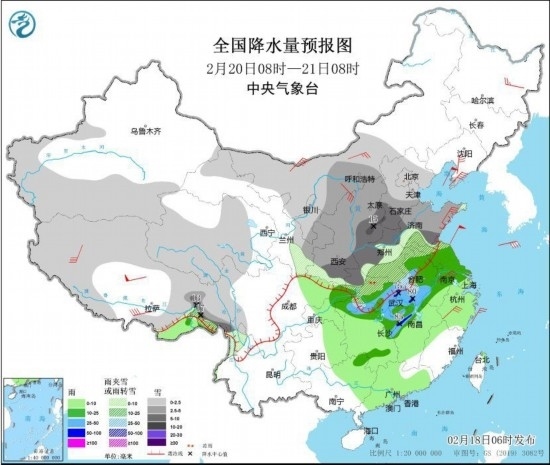 全國降水量預(yù)報圖(2月18日8時-19日8時)