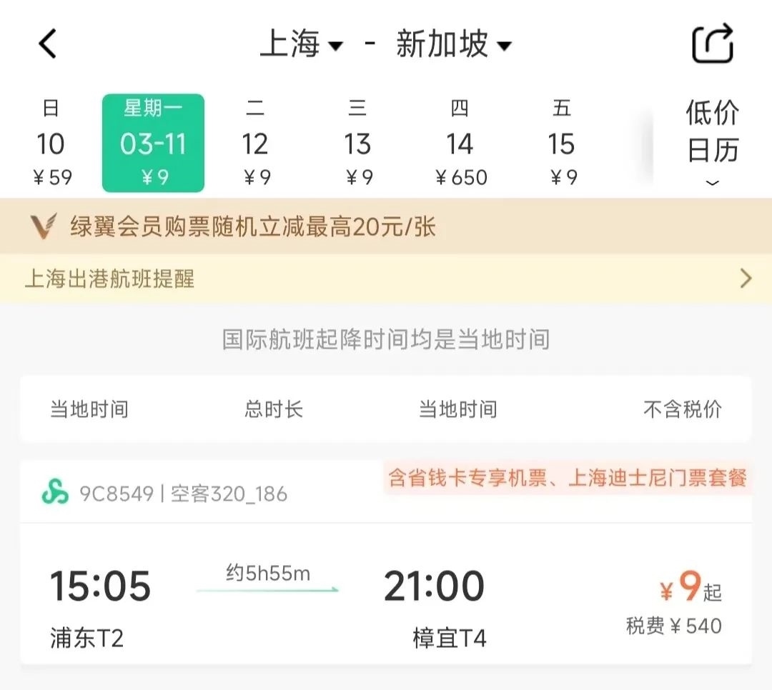 值得注意的是,這張截圖來自某訂票平臺,如果查看春秋航空官網(wǎng)或者APP,并沒有不含稅0元的票價,而是最低9元(不含稅)。