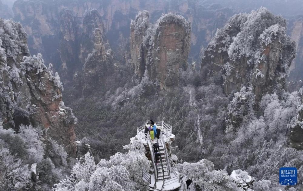 近日,湖南張家界迎來(lái)降雪天氣,雪后的張家界國(guó)家森林公園銀裝素裹,美景如畫(huà),引人入勝。
