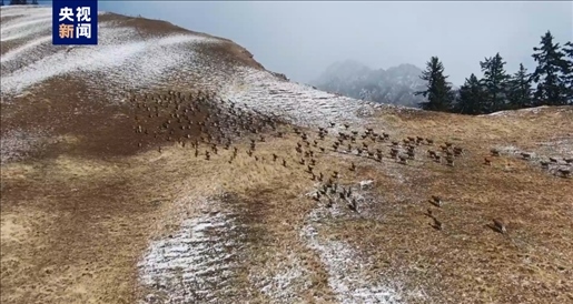 近日,甘肅祁連山國家級(jí)自然保護(hù)區(qū)寺大隆自然保護(hù)站管護(hù)人員利用無人機(jī)巡護(hù)時(shí),拍攝到一大群巖羊在雪地覓食、追逐,據(jù)管護(hù)人員目測達(dá)200多只。