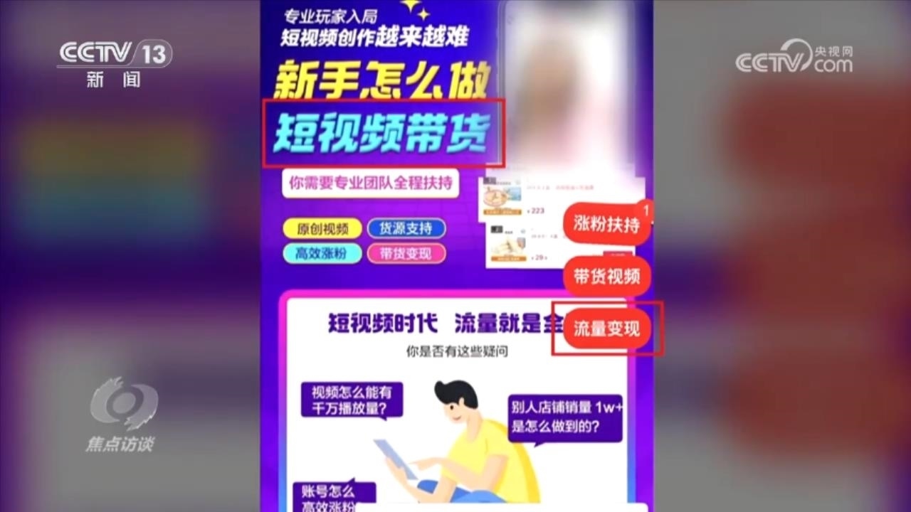 通過制作優(yōu)質(zhì)短視頻吸引粉絲并帶貨,這本身無可非議,但是在利益誘惑下,一些短視頻的博主卻不惜造假來擺拍各種博人眼球的視頻,獲取流量變現(xiàn),而有些短視頻帶貨的培訓(xùn)機構(gòu)推出的漲粉技巧更是包括“顛覆認(rèn)知”“制造對立”“抄襲素材”等不正當(dāng)手段。