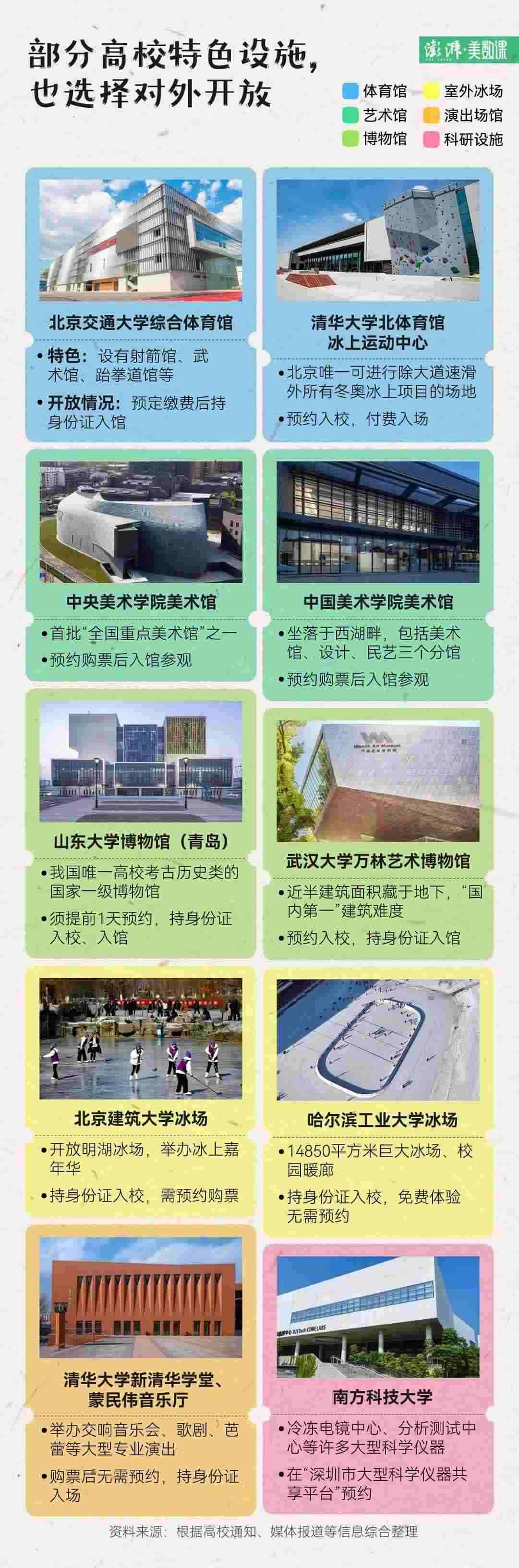 除了體驗(yàn)大學(xué)氛圍、參觀大學(xué)環(huán)境,還可以在高校預(yù)約運(yùn)動(dòng)場(chǎng)地,進(jìn)行體育鍛煉。例如,清華大學(xué)在去年剛剛開(kāi)放的北體育館,除了有常見(jiàn)的健身中心、乒乓球館、籃球館等設(shè)施,還建有冰上運(yùn)動(dòng)中心,在夏天也可以滑冰、打冰球、撞冰壺。