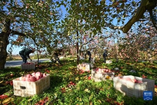 3月23日,小朋友在河北省石家莊市鹿泉區(qū)山南張莊村的杏林中玩耍。新華社發(fā)(閆志國攝)