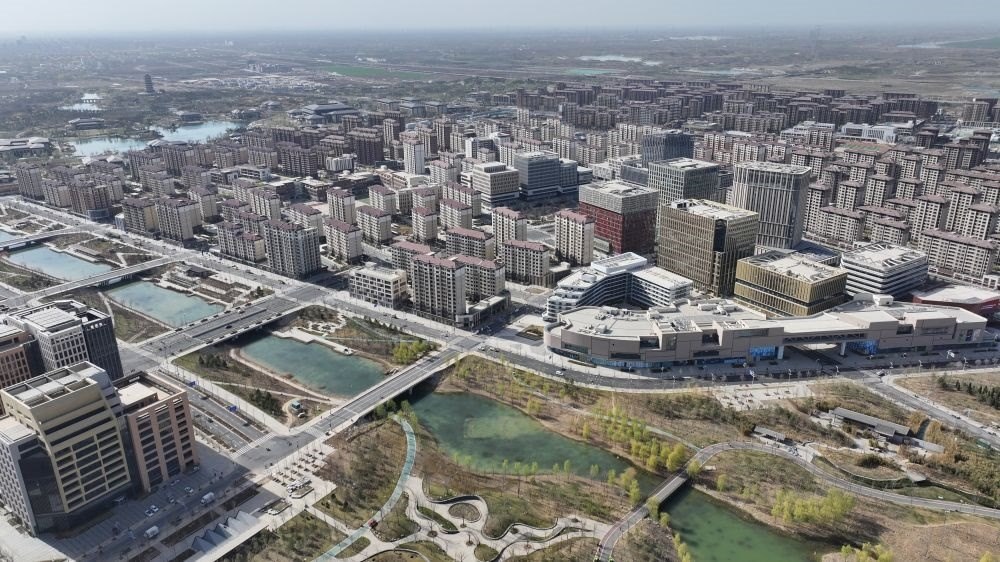 ↑這是雄安新區(qū)商務服務中心(3月30日攝,無人機照片)。