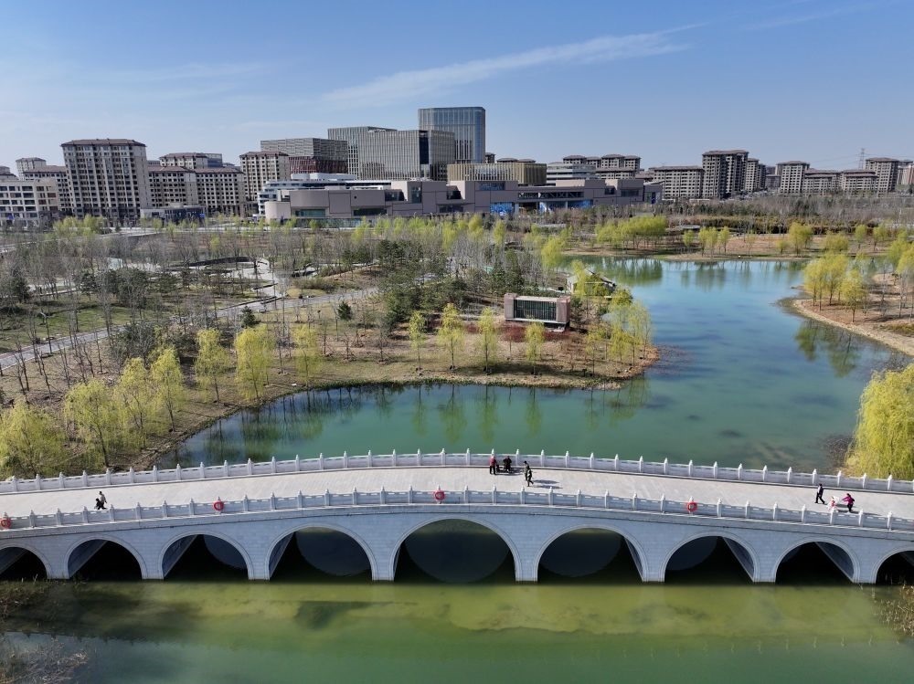 ↑這是雄安新區(qū)金湖公園(3月29日攝,無人機照片)。