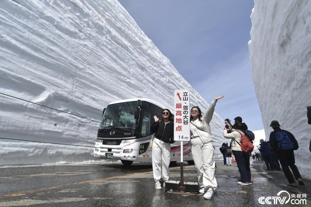 當?shù)貢r間2024年4月15日,日本富山縣立山町,日本著名的“雪墻公路”對公眾開放,兩側積雪高達14米,吸引大批游客。