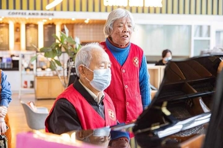 老人名叫葉明倫,是當?shù)芈窐蛐W的退休教師,也是臺州恩澤醫(yī)院“音樂療吧”的鋼琴志愿者,今年已有85歲。每周一上午,他都會乘坐公交車,從5公里外的家中趕到醫(yī)院,為患者們義務彈鋼琴。