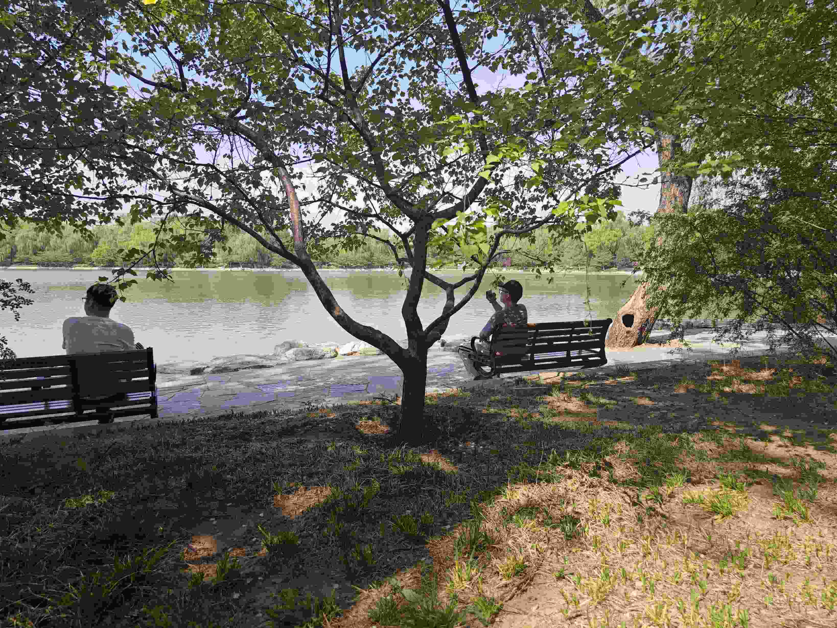 工作日午休時分的玉淵潭公園,也成了上班族的精神“快充站”。玉淵潭公園東湖旁,一排年輕人正悠閑地曬著太陽。眼前的湖面開闊平靜,微風(fēng)拂面,頭頂垂柳依依,耳邊不時傳來清脆的鳥鳴聲。
