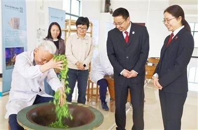 圖③:法官在制茶車間和工人交流。