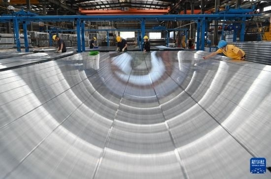 5月1日,位于河南省沁陽(yáng)市的廣東興發(fā)鋁業(yè)(河南)有限公司擠壓車(chē)間,工人在生產(chǎn)線(xiàn)上工作。