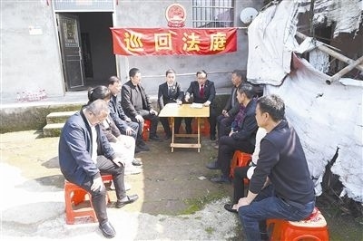 陳某因未履行贍養(yǎng)義務(wù),被87歲的老母親訴至法院。為解開(kāi)母子間的心結(jié)、修復(fù)親情,庭審過(guò)程中,法官聯(lián)合當(dāng)?shù)劓?zhèn)、村干部,邀請(qǐng)雙方親屬共同參與調(diào)解。最終,母子二人達(dá)成調(diào)解協(xié)議,陳某當(dāng)場(chǎng)支付了贍養(yǎng)費(fèi)。圖為巡回審判現(xiàn)場(chǎng)。