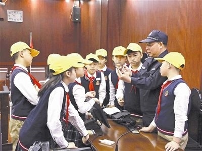 近日,河南省商丘市中級(jí)人民法院開(kāi)設(shè)了一堂法治課,為十余名尋訪(fǎng)研學(xué)的學(xué)生實(shí)地講授法律知識(shí)。研學(xué)活動(dòng)中,在法治副校長(zhǎng)和法警的帶領(lǐng)下,同學(xué)們依次參觀(guān)了審判庭、羈押室、少年審判庭等場(chǎng)所,了解了法庭布置,體驗(yàn)了單警裝備,學(xué)到了法律知識(shí),“零距離”感受到了法律的崇高與神圣。圖為法警向同學(xué)們展示手銬。