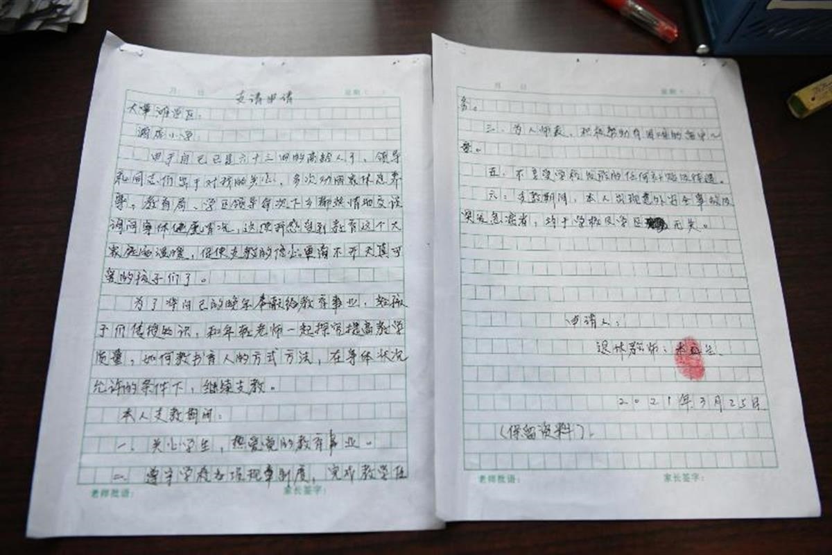 本科生的退休返崗申請書(圖片來源:新甘肅)