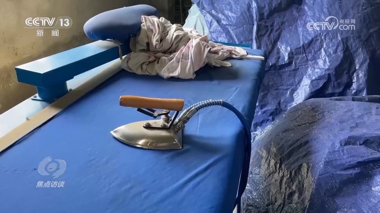 原來,這類直播間在售賣前,她們只用噴劑、熨斗、吊牌等做一些簡單的打理,并不會做專門的清洗、消毒等衛(wèi)生處理,令人堪憂。目前,消費者恰恰是在既不知情又不衛(wèi)生的情況下購買了這些所謂的“尾貨孤品”。那么,一邊是滿地臟亂差的舊衣服,一邊是直播間看上去光鮮亮麗的“尾貨”,這類直播間到底是利用什么樣的障眼法做到的呢?據(jù)相關(guān)工作人員介紹,把衣服燙一下,直播間背景燈一打就不同;把商標吊牌一掛,就感覺像新的一樣,在直播間里面是看不出來的。