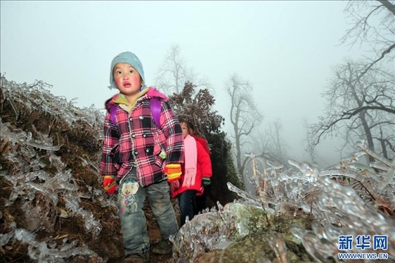 廣西桂林市全州縣蕉江瑤族鄉(xiāng)大源村位于桂北高寒山區(qū)。每年隆冬時節(jié),孩子們都要在老師和家長的護(hù)送下,在一片冰天雪地中踏上求學(xué)之路。
