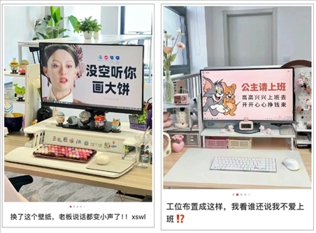 “沒空聽你畫大餅”“公主請開心上班”,調侃吐槽、加油鼓勁的電腦壁紙隨處可見。