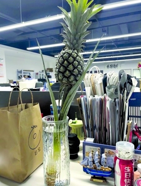 00后楊三日從事新媒體運營工作,她在工位上養(yǎng)了一個菠蘿,“養(yǎng)菠蘿是一件很酷的事情,不僅能觀賞,還能吃,很配我特立獨行的氣質?!彼f自從養(yǎng)了菠蘿之后,每天上班時心情就變得非常好?!拔业墓の痪拖駸釒в炅忠粯樱崆斑M入了春天?!?/p>