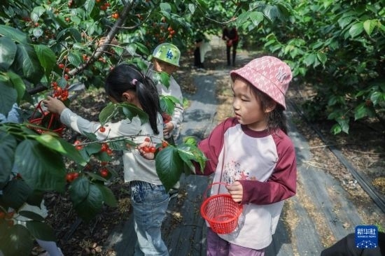 鄉(xiāng)村里的“櫻桃節(jié)” 4月24日,小朋友在泰山村共富工坊的櫻桃園里采摘櫻桃。......