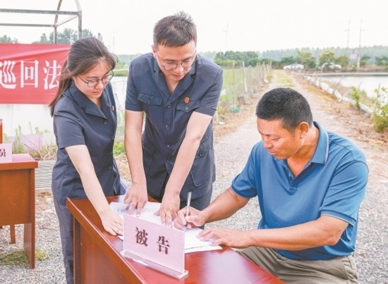 近日,安徽省天長市人民法院秦欄人民法庭法官來到東風(fēng)村螃蟹養(yǎng)殖基地,公開開庭審理一起農(nóng)業(yè)承包合同糾紛案。法官經(jīng)過現(xiàn)場(chǎng)勘查、細(xì)心調(diào)解,當(dāng)場(chǎng)化解糾紛,養(yǎng)殖戶投放的500斤蟹苗有了著落,村委會(huì)減少了經(jīng)濟(jì)損失。