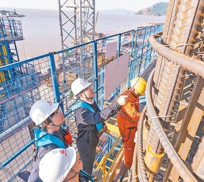 西堠門公鐵兩用大橋墩身施工現(xiàn)場(chǎng)。弋鵬麗攝
