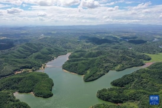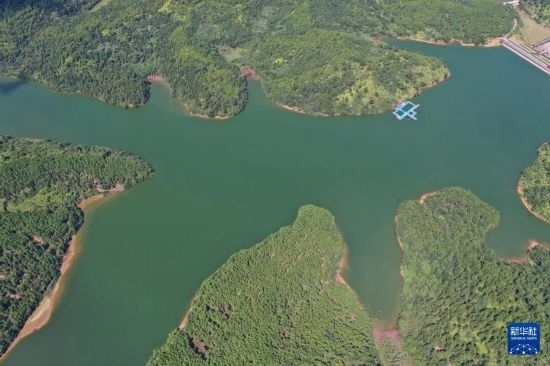 這是江西省撫州市臨川區(qū)秋溪鎮(zhèn)溪山湖水庫(7月25日攝,無人機(jī)照片)。