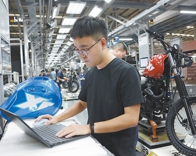 “哪個(gè)環(huán)節(jié)的裝配參數(shù)和給定值不吻合,系統(tǒng)就會(huì)自動(dòng)報(bào)警,不再需要人工巡檢,效率得到大幅提升。”陳國(guó)靖說(shuō),得益于數(shù)智化生產(chǎn)線,每150秒就有一輛摩托車下線。