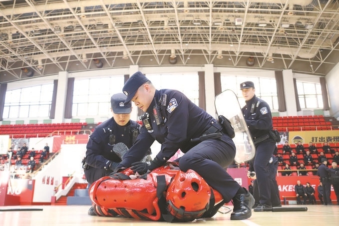 圖為民警輔警開展處置突發(fā)事件演練。本報記者 寇 松 攝
