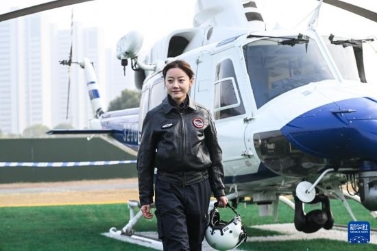 12月7日,女飛行員在飛行結(jié)束后走下直升機。