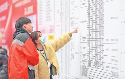 2月5日,在廣西柳州市融安縣2025年“春風(fēng)行動(dòng)”暨粵桂協(xié)作招聘會(huì)上,求職者了解就業(yè)信息。