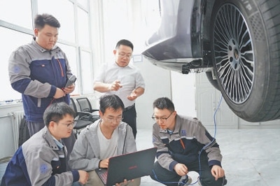 “目前進(jìn)度咋樣?”汽車起重機(jī)吊起的一臺(tái)樣車旁,公司負(fù)責(zé)人、吉林大學(xué)教授靳立強(qiáng)問(wèn)團(tuán)隊(duì)成員。